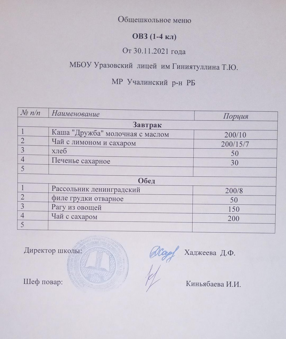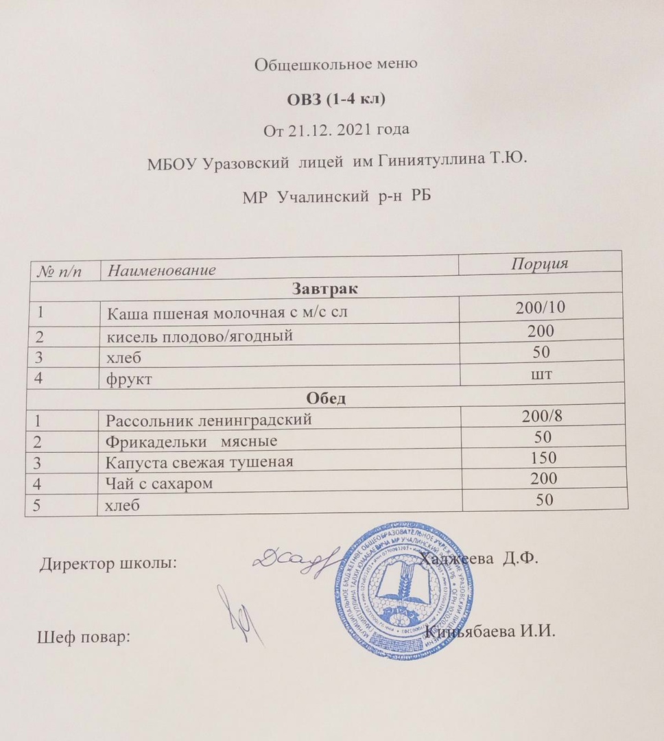 (Ежедневное меню (ОВЗ))